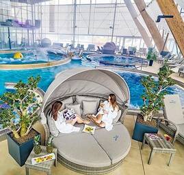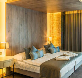 Luxusné apartmány, poschodové mezonetové izby v štýle podkrovia a klasické dvojlôžkové izby, v cene ubytovania je zahrnutý vstup do všetkých zón aquaparku.