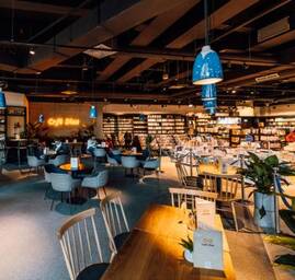 Káva, kávové nápoje, horúce čokolády, alko a nealko, vína, pivo, limonády a zákusky.
